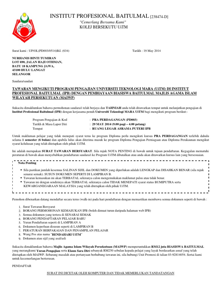 College offer proffesional and UiTM programme lot 1363 jalan perkasa off jalan kg. Get the inside scoop on jobs salaries top office locations and CEO insights. Abbreviation for Institut Professional Baitulmal.